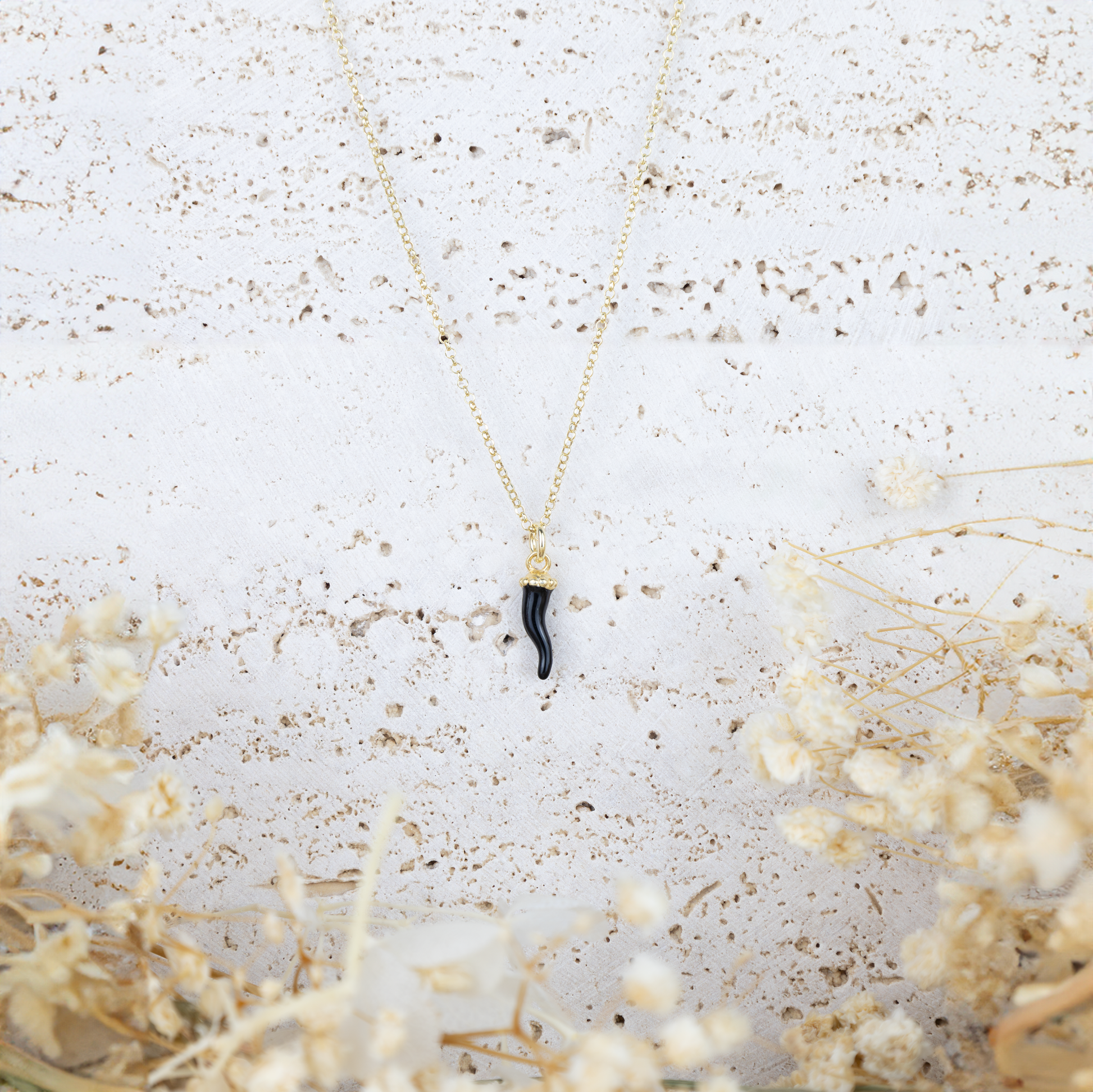- Collana Argento 925 placcata oro con Cornino Nero